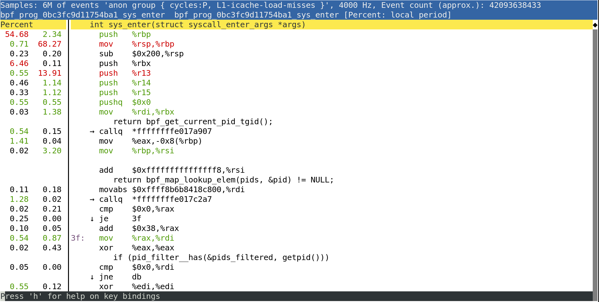 swapper 0 [4] 319242.043904: 58 cpu/mem-loads,ldlat=30/P: ffff8d3e49c0e688 11868100242 |OP LOAD|LVL LFB or LFB hit|SNP None|TLB L1 or L2 hit|LCK No|BLK N/A 290 0 ffffffff9a13eb2c __update_load_avg_cfs_rq+0x9c (vmlinux) 9c0e688